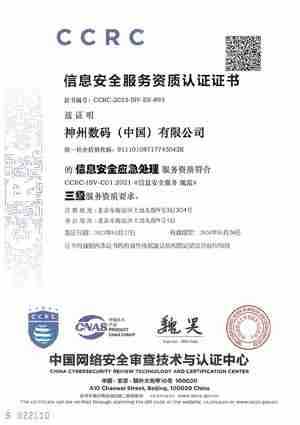 信息安全服务资质认证证书(应急处理)