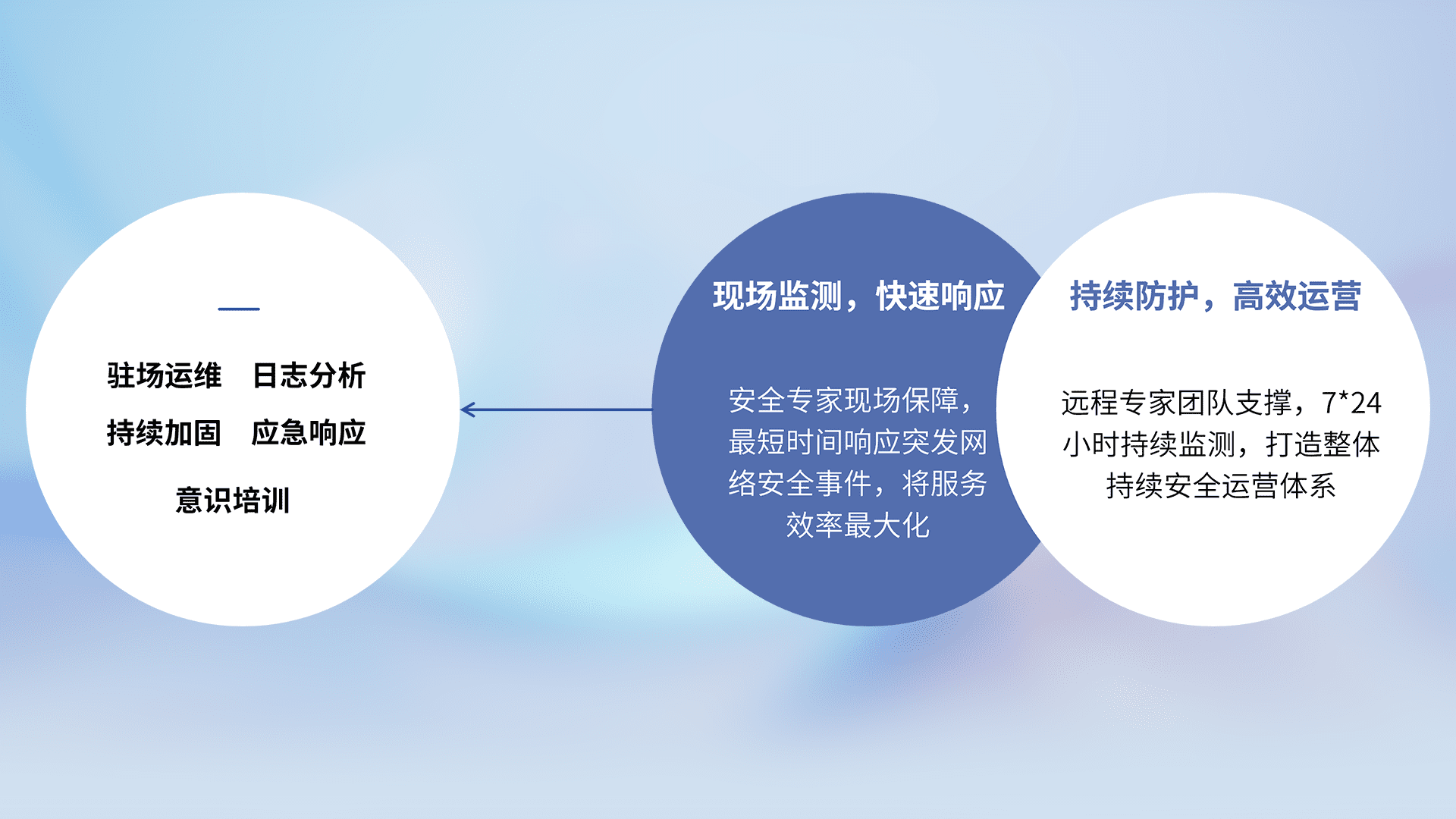 针对客户行业特性,,提供专属的一站式安全管理服务,,帮助客户全面感知网络空间威胁,,,,通过安全专家的线上、、线下防护支持,,,实现风险闭环,,,将安全保障常态化,,为客户打造常态化安全运维运营服务。。。